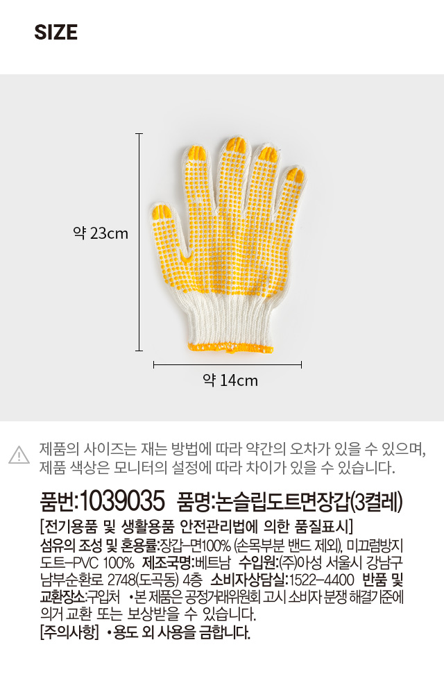 DAISO Non-slip dot cotton gloves (3 pairs)