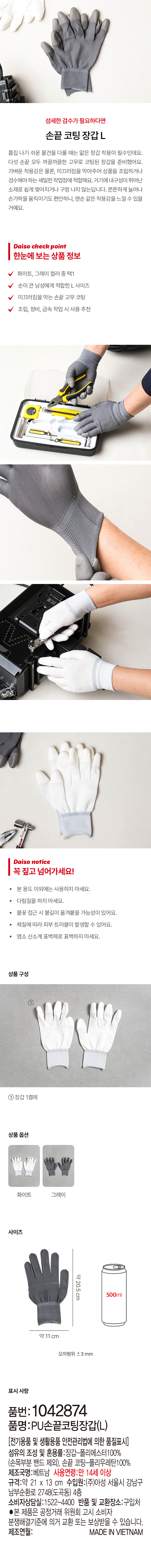 DAISO PU Fingertip Coating Gloves (L)