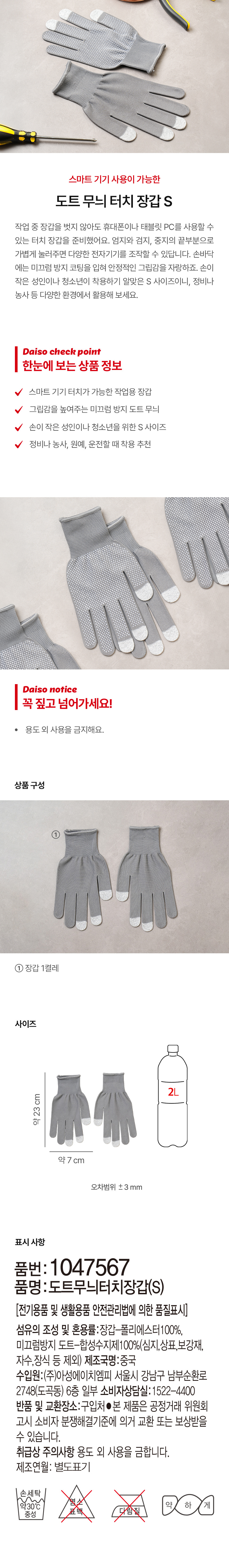 DAISO PVC Dot Pattern Touch Gloves (S)