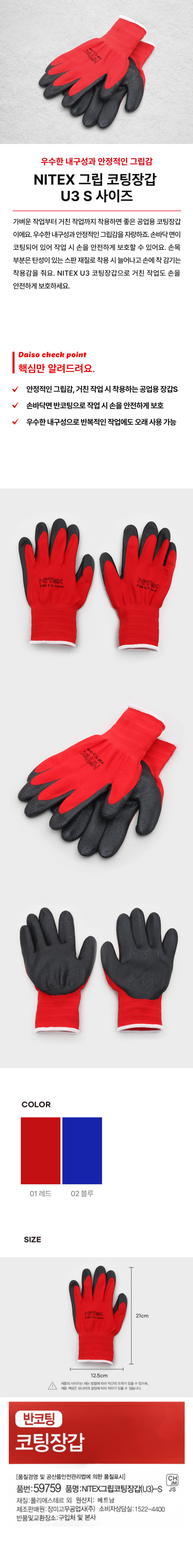 DAISO NITEX Grip Coating Gloves (U3)-S