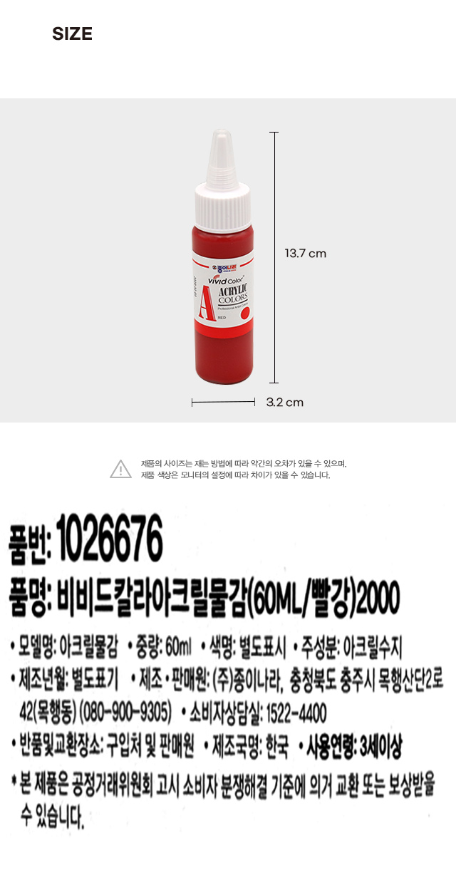 DAISO Vivid Color Acrylic Paint (60ml/Permanent Red)