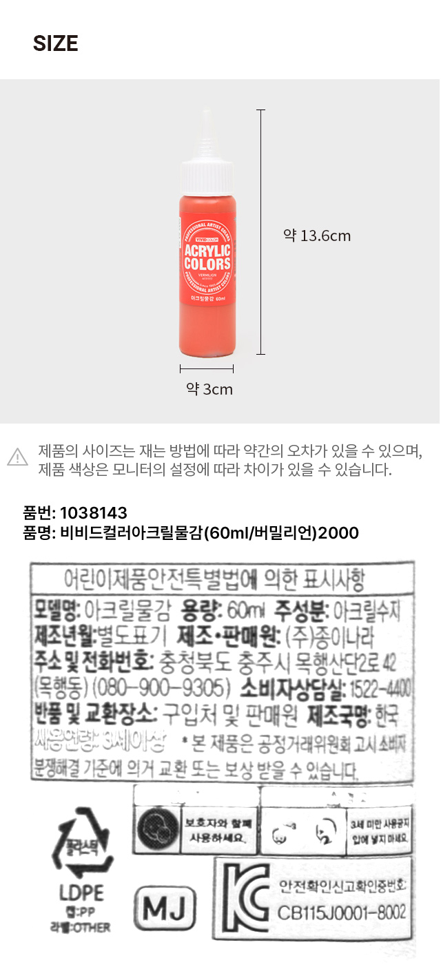 DAISO Vivid Color Acrylic Paint (60ml/Vermillion)