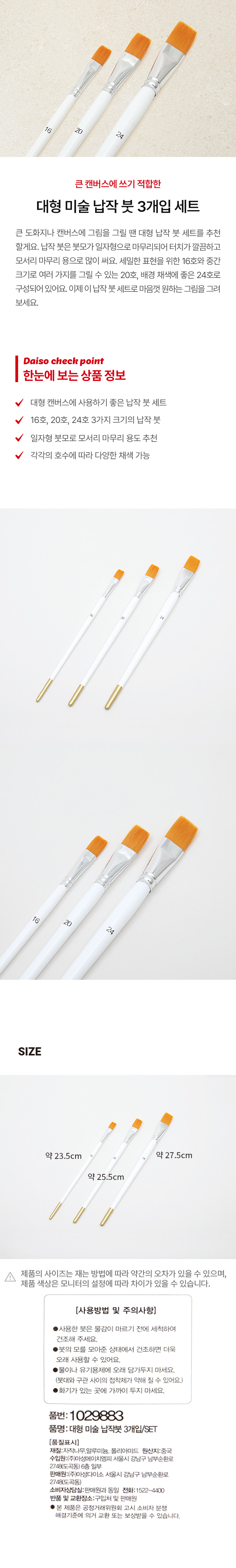DAISO Large-Size Art Flat Brush 3 Pieces/SET