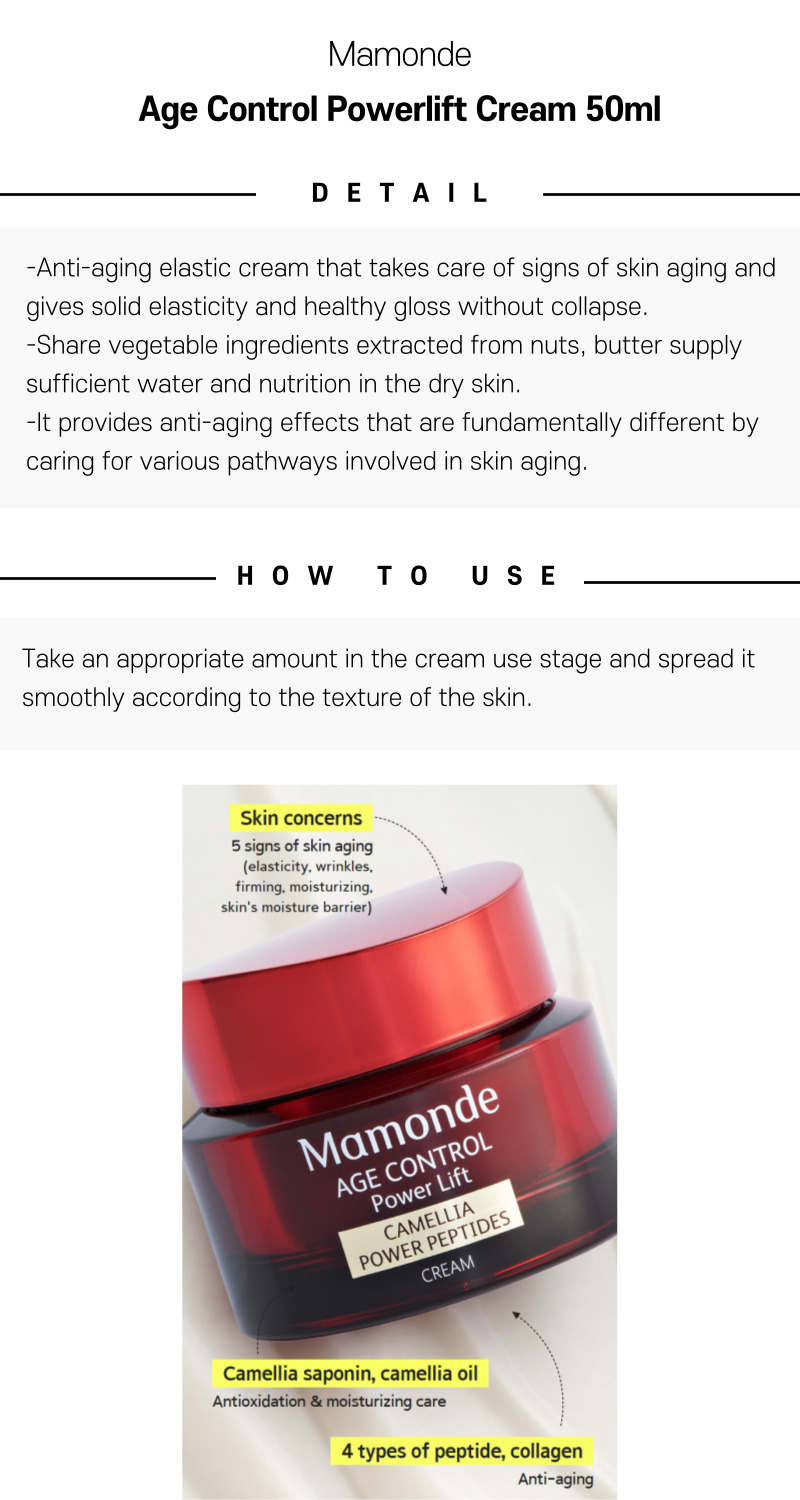 For anyone seeking an indulgent yet effective anti-aging moisturizer, Mamonde Age Control Powerlift Cream 50ml delivers. By nourishing the skin and enhancing elasticity, this formula helps preserve a lifted, smooth, and vital look, establishing itself as a valuable cornerstone in a daily age-defying skincare routine.