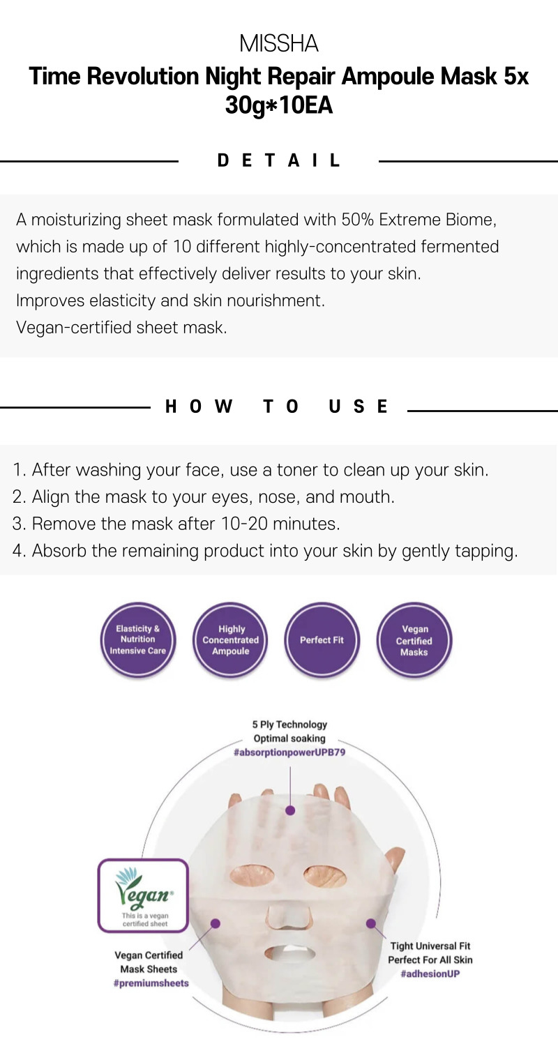 MISSHA Time Revolution Night Repair Ampoule Mask 5x 30g*10EA