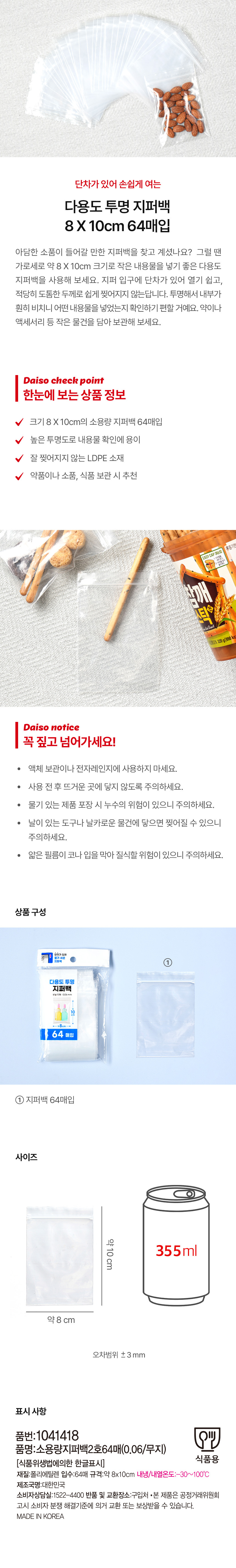 DAISO Small capacity zipper bag No. 2 64 sheets (0.06/plain)
