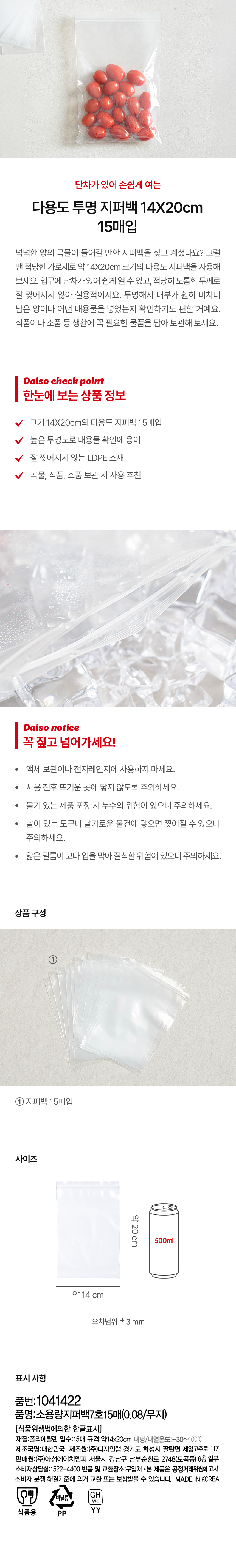 DAISO Small capacity zipper bag No. 7, 15 sheets (0.08/plain)
