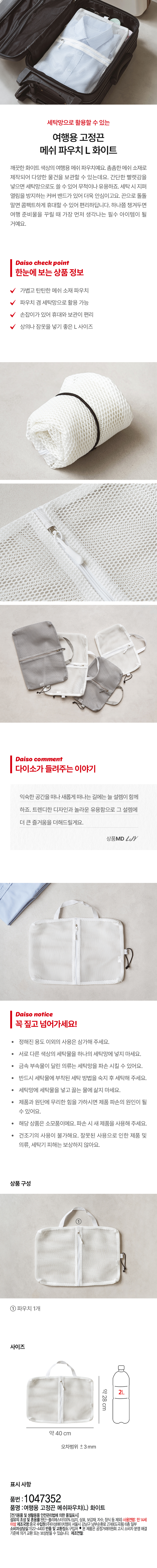 DAISO Travel Strap Mesh Pouch (L) White
