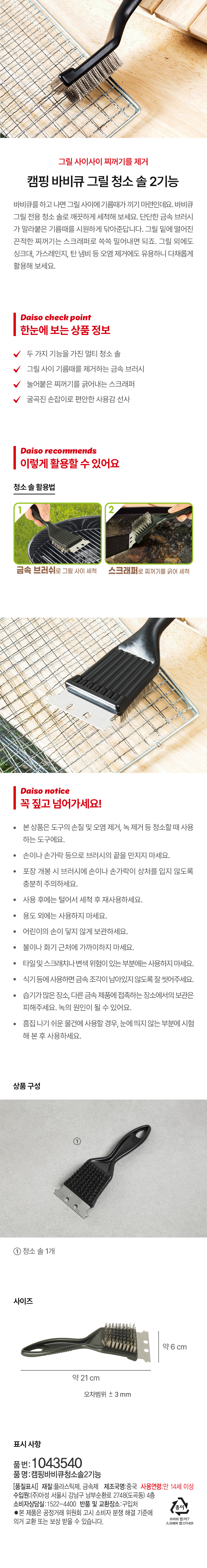 DAISO Camping BBQ Cleaning Brush 2 Functions