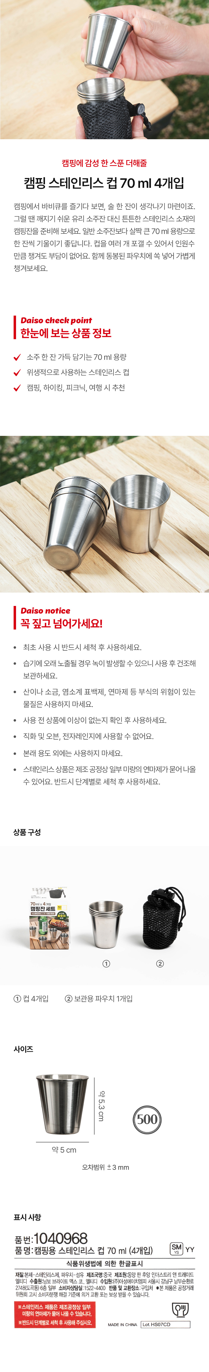 DAISO Camping Stainless Steel Cup 70ml (4 pieces)