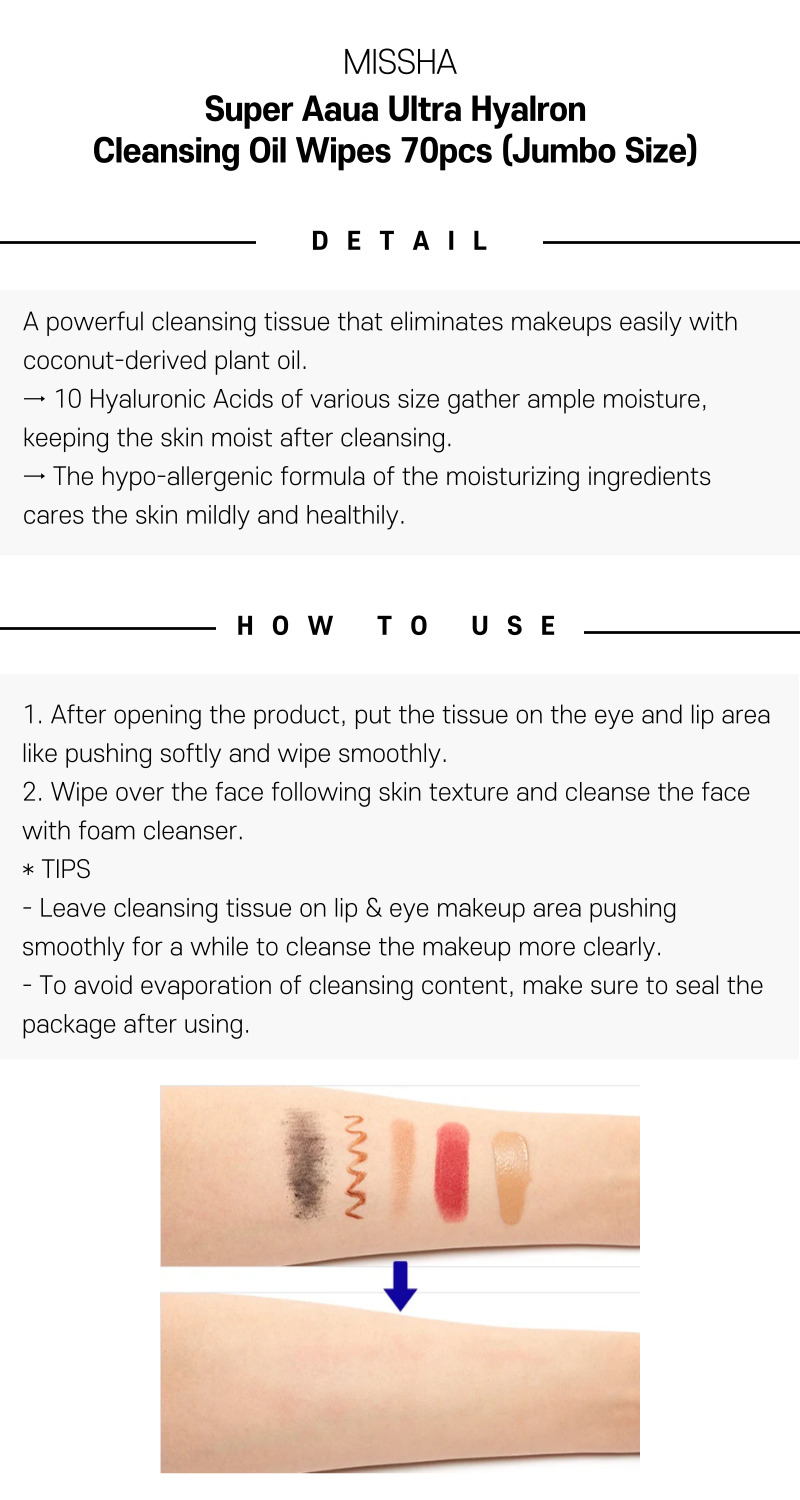 MISSHA Super Aaua Ultra Hyalron Cleansing Oil Wipes 70pcs (Jumbo Size)