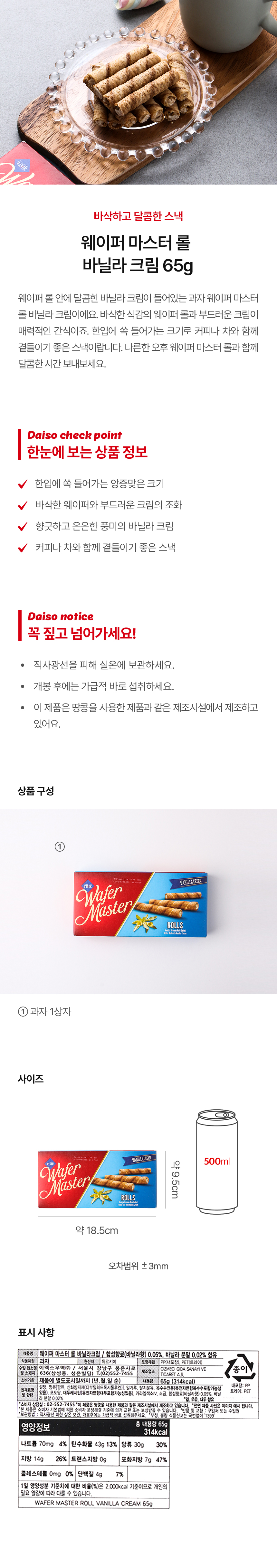 DAISO Wafer Master Roll Vanilla Cream (65g)