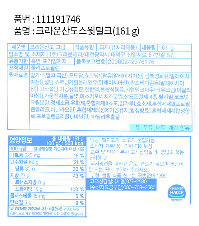 DAISO Crown Sando Sweet Milk (161g)