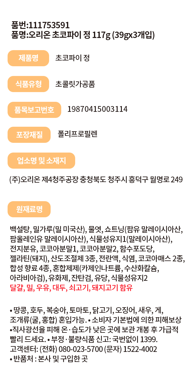 DAISO Orion Choco Pie 3P (117g)