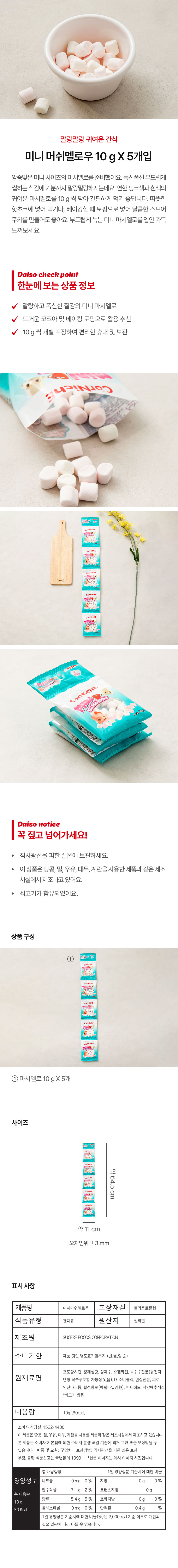DAISO Mini Marshmallows (50g) (5 pieces)