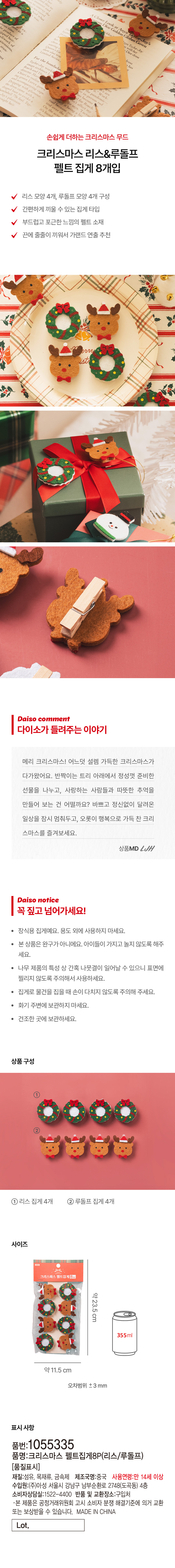 DAISO Christmas Felt Clips 8P (Rose/Rudolph)