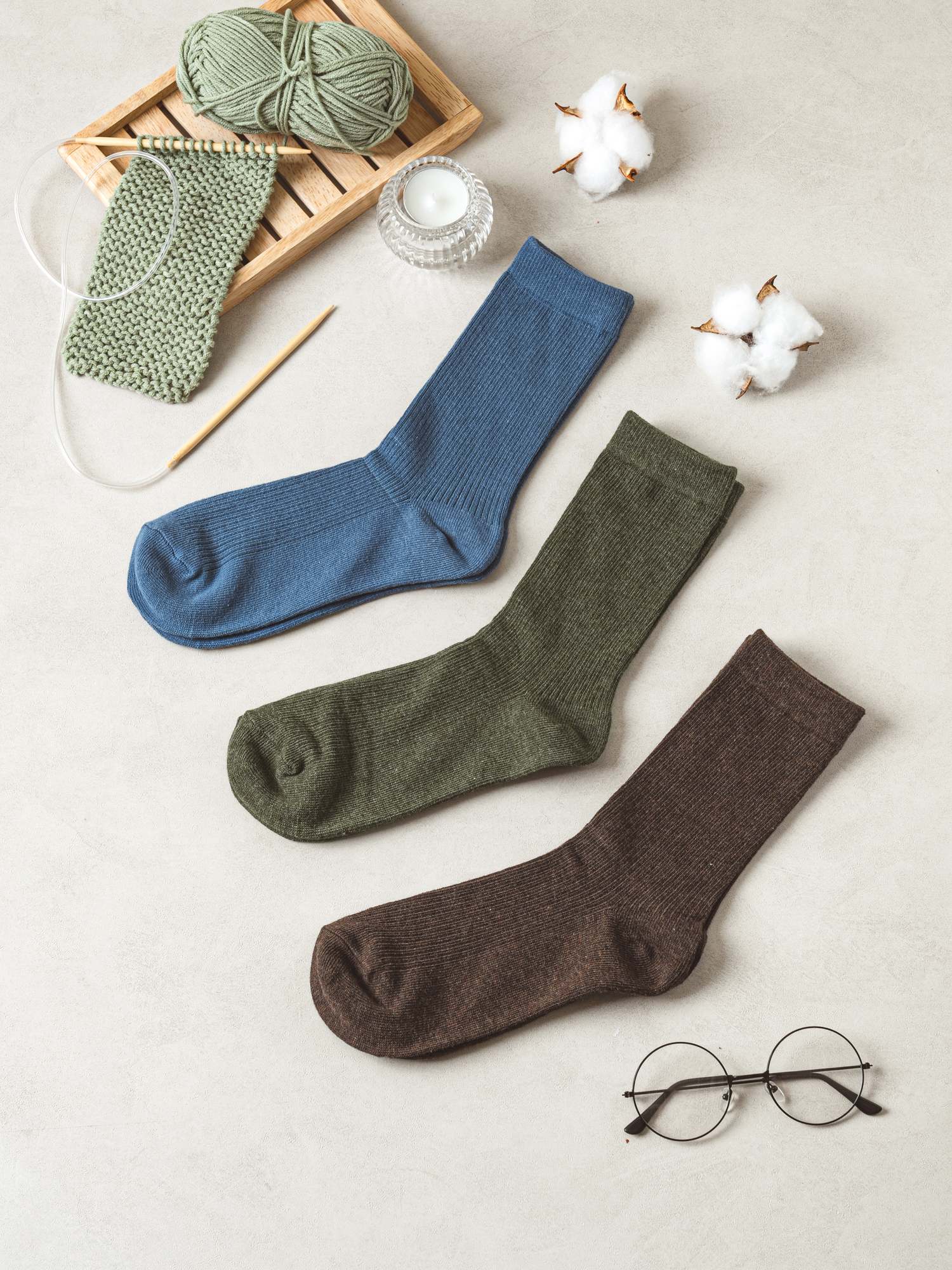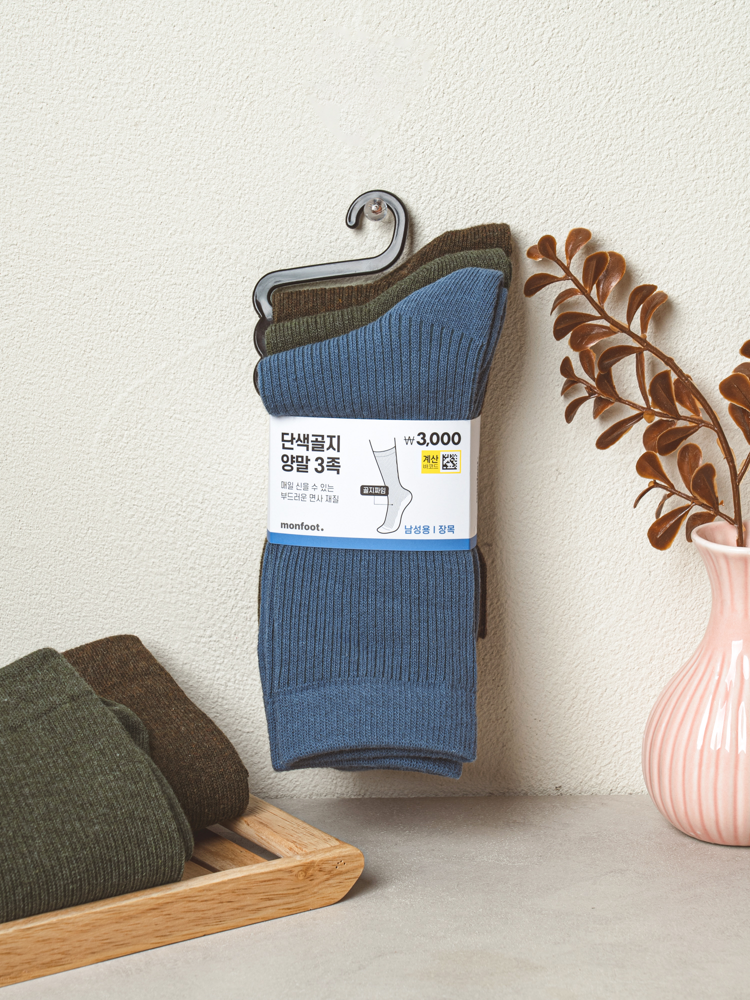 DAISO Men's Basic Long Socks Bundle (3 pairs/Color)