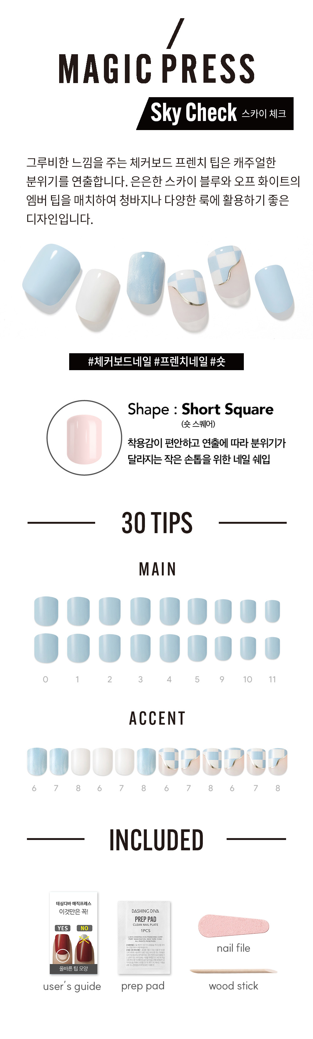 Dashing Diva Magic Press Sky Check (Short Square) Nail Tip