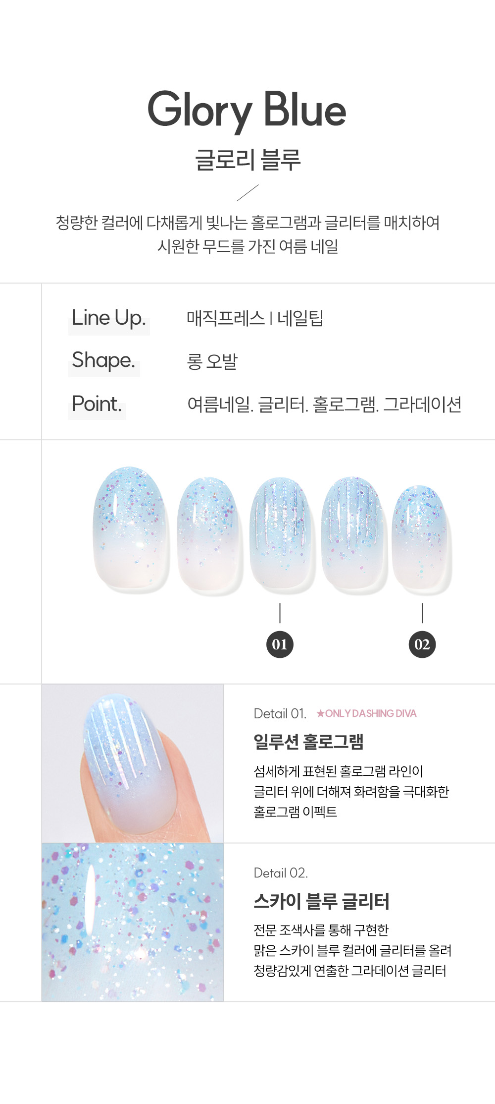 Dashing Diva Magic Press Glory Blue (Long Oval) Nail Tip