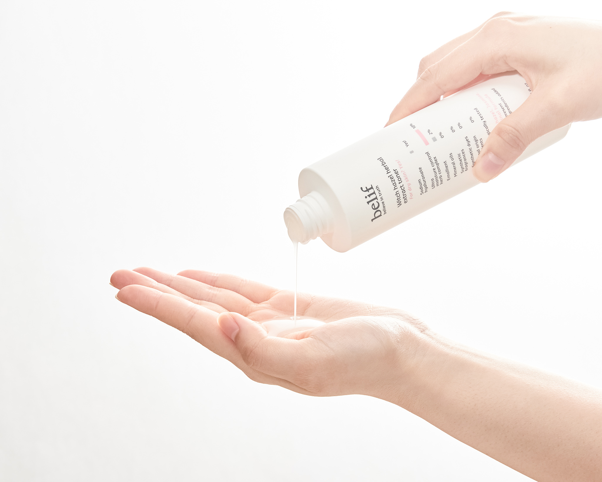 - After cleansing, pour a small amount of toner onto a cotton pad or your palms.