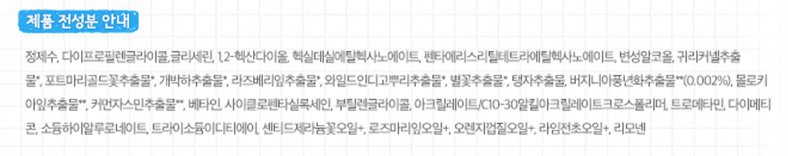 Water, Glycerin, Hamamelis Virginiana (Witch Hazel) Extract, Panthenol, Centella Asiatica Extract, Chamomilla Recutita (Matricaria) Flower Extract, Aloe Barbadensis Leaf Juice, Camellia Sinensis Leaf Extract, and more.
