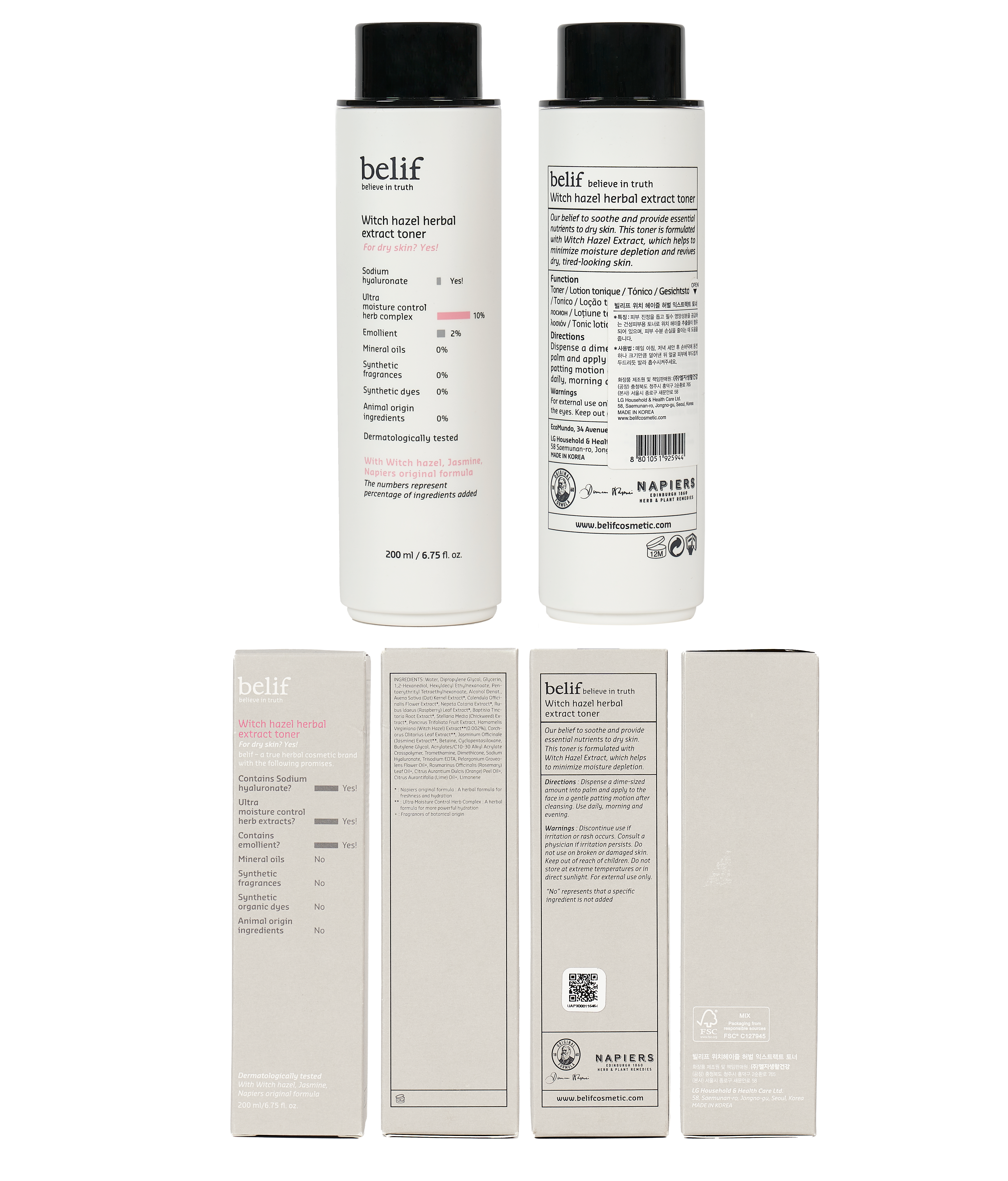Refresh and tone your skin with the Belif Witch Hazel Herbal Extract Toner. Formulated with witch hazel extract and other natural ingredients, this toner helps to minimize the appearance of pores, balance oil production, and soothe the skin. Lightweight and refreshing, it is perfect for daily use and leaves your skin feeling clean, smooth, and revitalized.