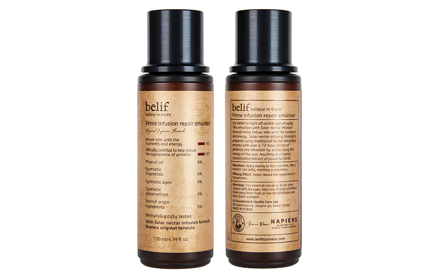 Belif combines traditional herbal formulas with modern science to deliver effective skincare solutions. The Prime Infusion Repair Emulsion is perfect for those seeking to restore their skin's youthful vitality and achieve a more radiant complexion.