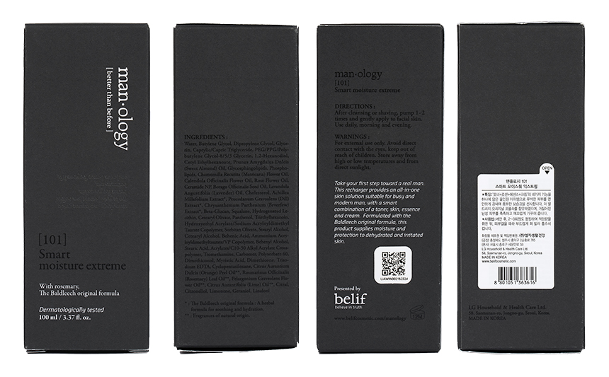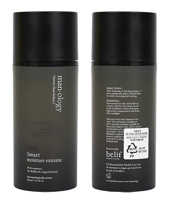 Experience the convenience of the Belif Manology 101 Smart Moisture Extreme, a 4-in-1 moisturizer that combines the benefits of a toner, lotion, essence, and cream in a single step. This intensive moisturizing soother is designed to keep men's skin hydrated and soft, providing long-lasting moisture and protection. :contentReference[oaicite:0]{index=0}