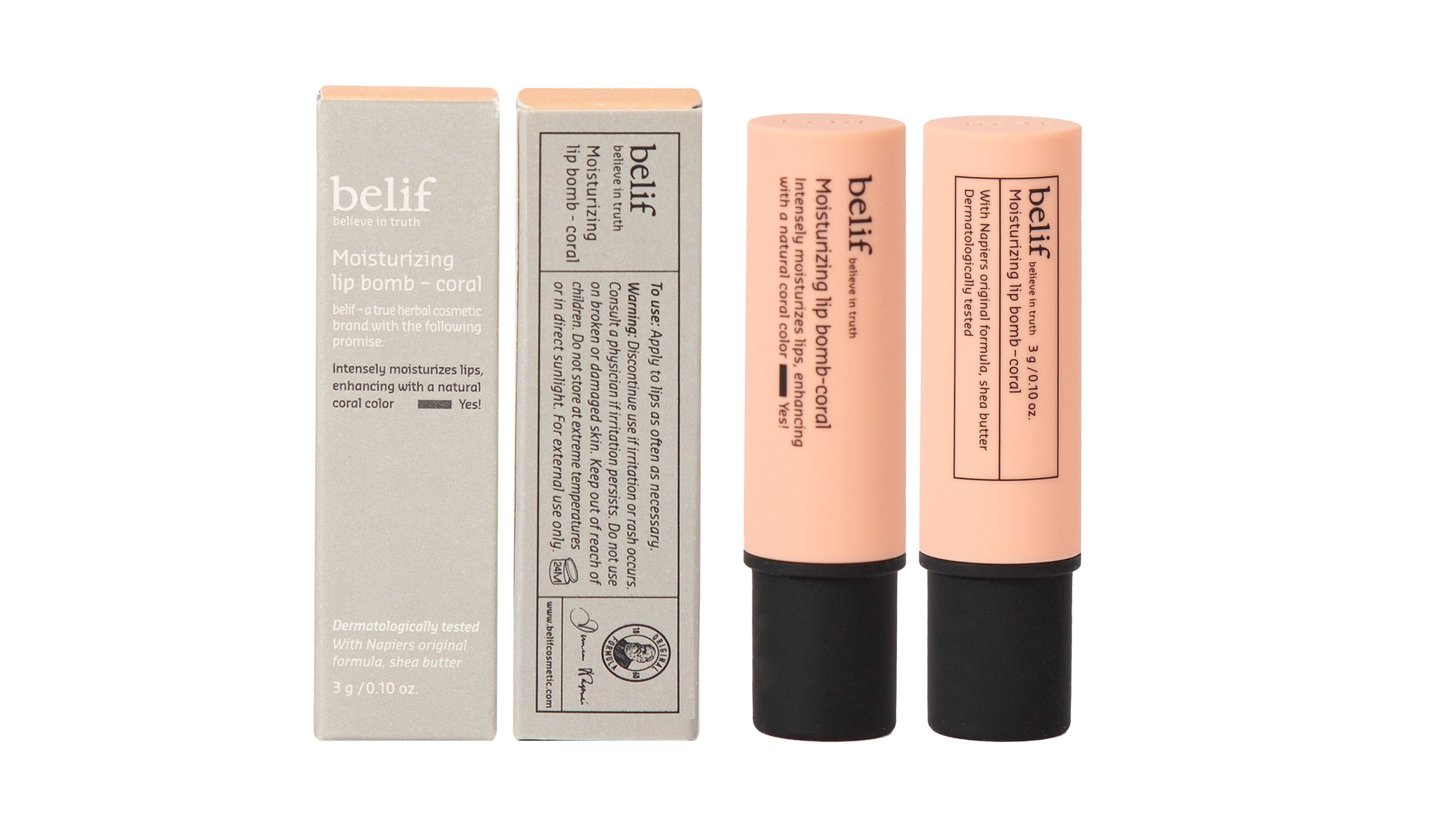 Experience the soothing hydration of the Belif Moisturizing Lip Balm - Coral, a mild and highly moisturizing lip balm that soothes dry lips while also giving a soft pastel coral color for naturally healthy-looking lips.