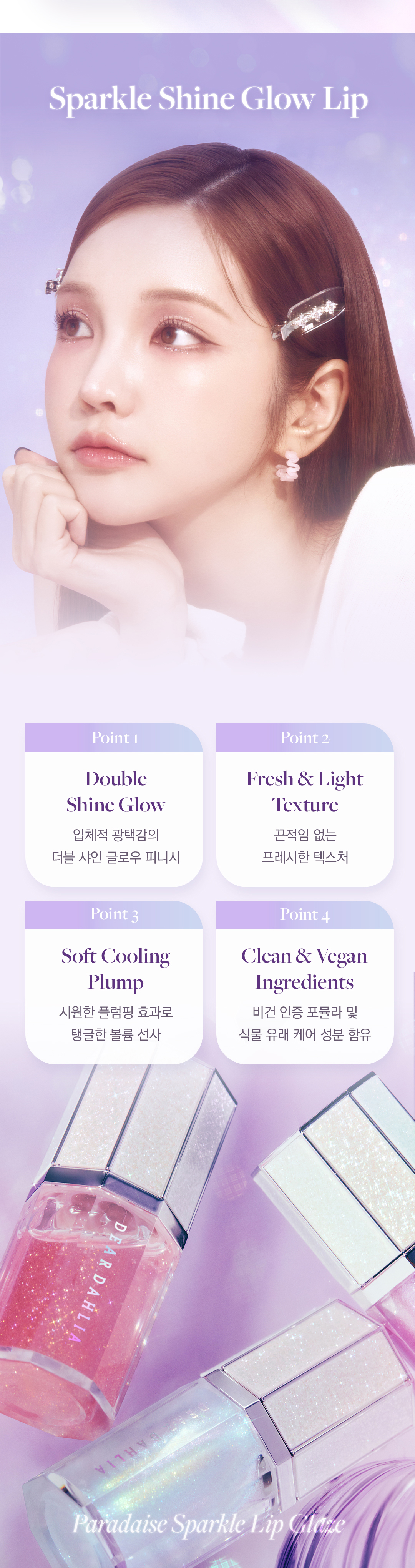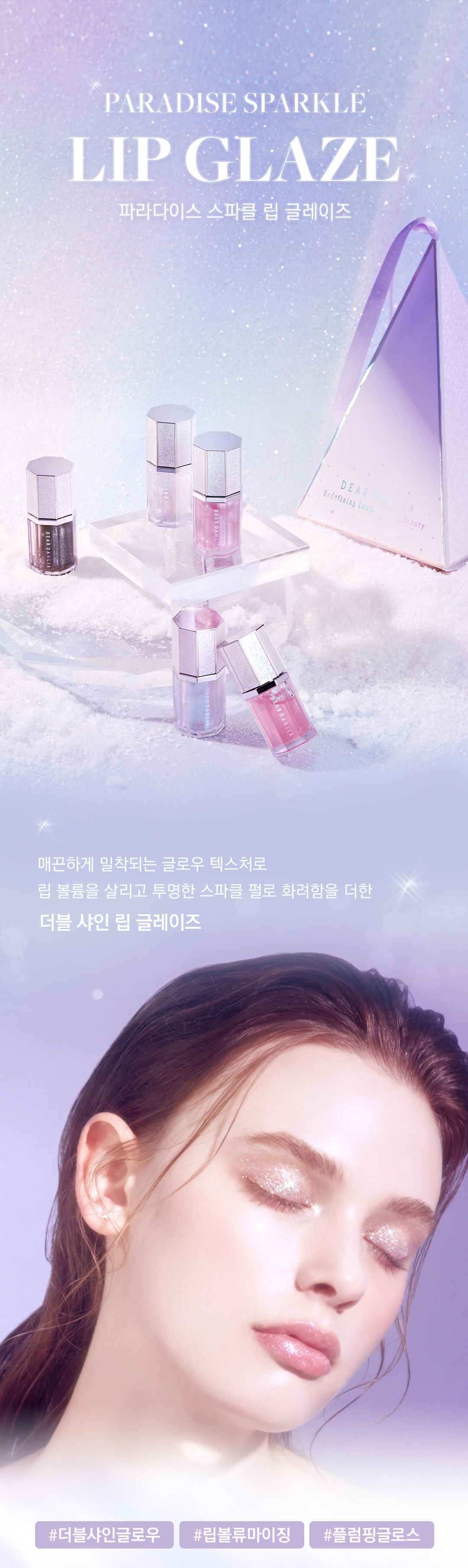 DEAR DAHLIA [Holiday] Paradise Sparkle Lip Glaze is a festive lip glaze that delivers an eye-catching sparkle and a high-shine finish. Specially formulated for the holiday season, this lip glaze enhances your lips with a rich, luminous color and a subtle glitter effect, making it the perfect accessory for any celebration.