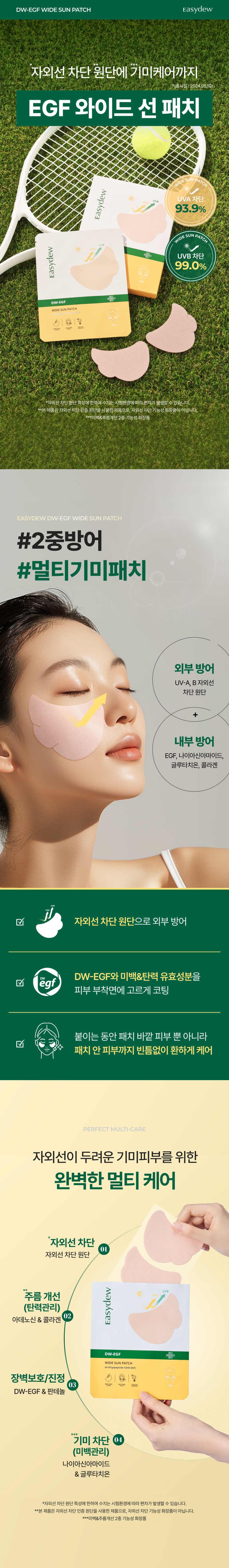 The **Easydew EGF Wide Blemish Sun Patch** provides **powerful UV protection, blemish care, and skin recovery benefits** in a **wide-format, easy-to-use patch**. With **SPF 50+ PA++++ and EGF**, these patches help **shield the skin, reduce irritation, and ensure long-lasting sun defense**.