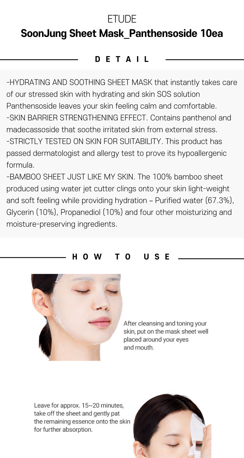 ETUDE SoonJung Sheet Mask_Panthensoside 10ea