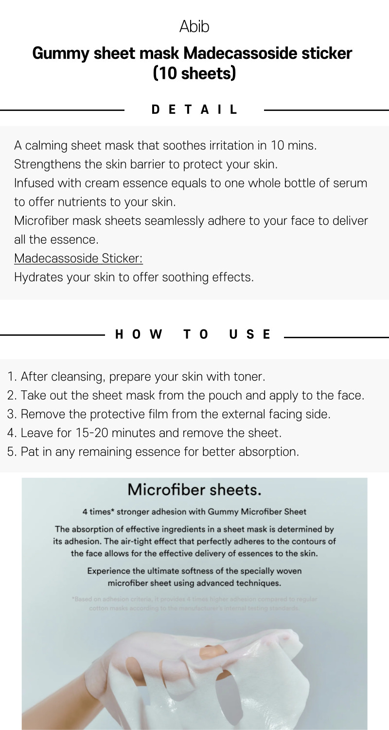 Abib Gummy sheet mask Madecassoside sticker (10 sheets)