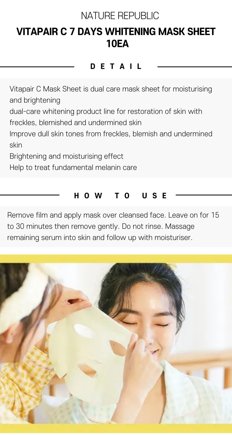 Nature Republic Vitapair C 7 Days Whitening Mask Sheet 10ea