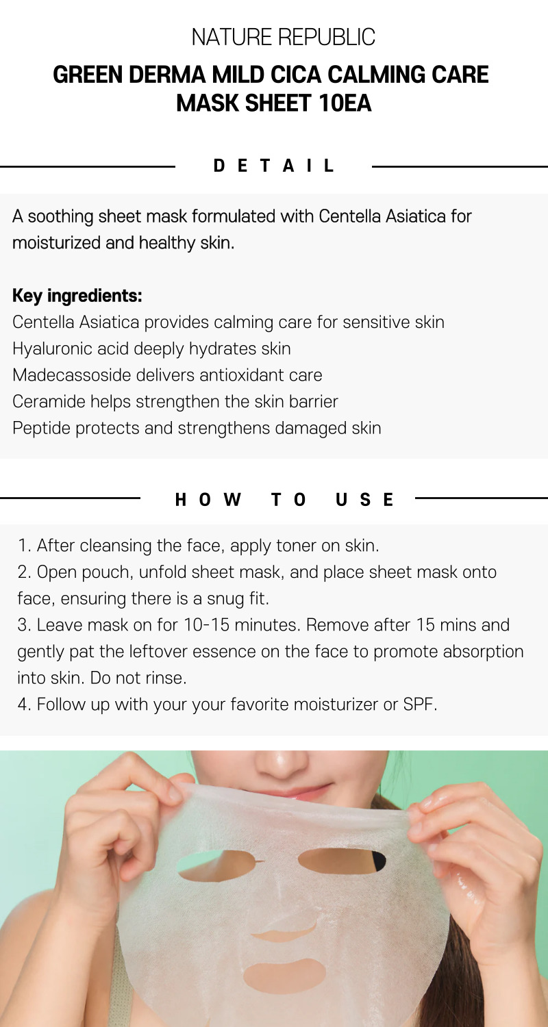 Nature Republic green Derma Mild Cica Calming Care Mask Sheet 10ea