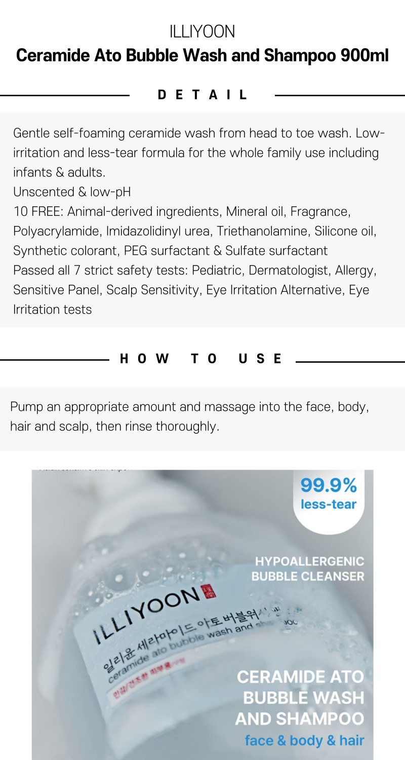 ILLIYOON Ceramide Ato Bubble Wash and Shampoo 900ml