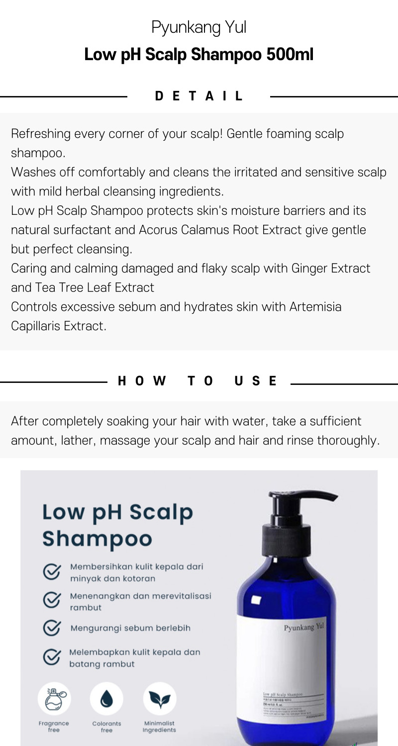 Packaged in a 500ml bottle, the Pyunkang Yul Low pH Scalp Shampoo 500ml is meticulously formulated to deliver a balanced cleansing experience that maintains the delicate pH of your scalp while effectively removing impurities. Its soothing and gentle ingredients make it an excellent choice for daily use, ensuring your scalp stays clean, healthy, and free from irritation. For the most current product specifications, detailed ingredient information, and further insights, please refer to the official Pyunkang Yul website or consult authorized retailers.