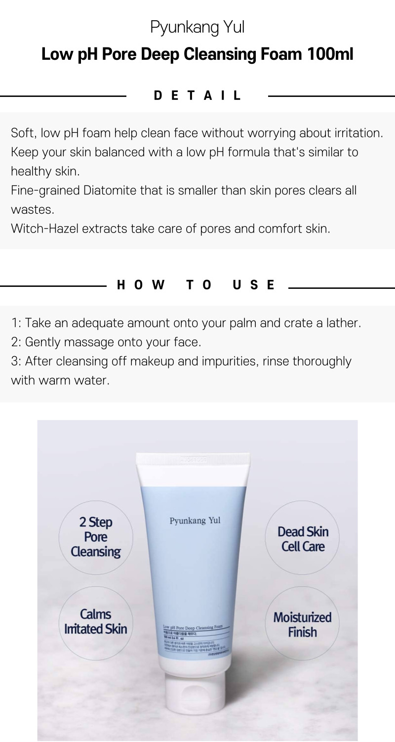 Packaged in a sleek 100ml bottle, the Pyunkang Yul Low pH Pore Deep Cleansing Foam 100ml is meticulously designed to provide a comprehensive cleansing solution that respects your skin's natural balance. Its innovative, low pH formula ensures the skin’s protective barrier remains intact while effectively purifying pores. For the most current product specifications, detailed ingredient information, and further insights, please refer to the official Pyunkang Yul website or consult authorized retailers.