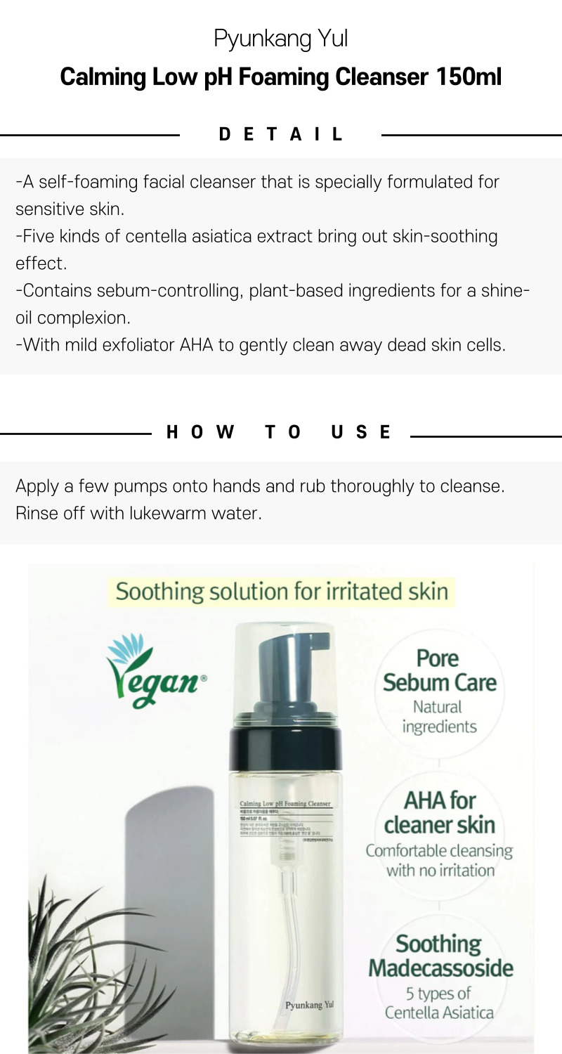 Packaged in a sleek 150ml bottle, the Pyunkang Yul Calming Low pH Foaming Cleanser 150ml is meticulously formulated to offer a balanced and gentle cleansing experience. Its innovative low pH formula effectively purifies your skin while preserving essential moisture, making it an indispensable addition to your daily skincare routine. For the most current product specifications, detailed ingredient information, and further insights, please refer to the official Pyunkang Yul website or consult authorized retailers.