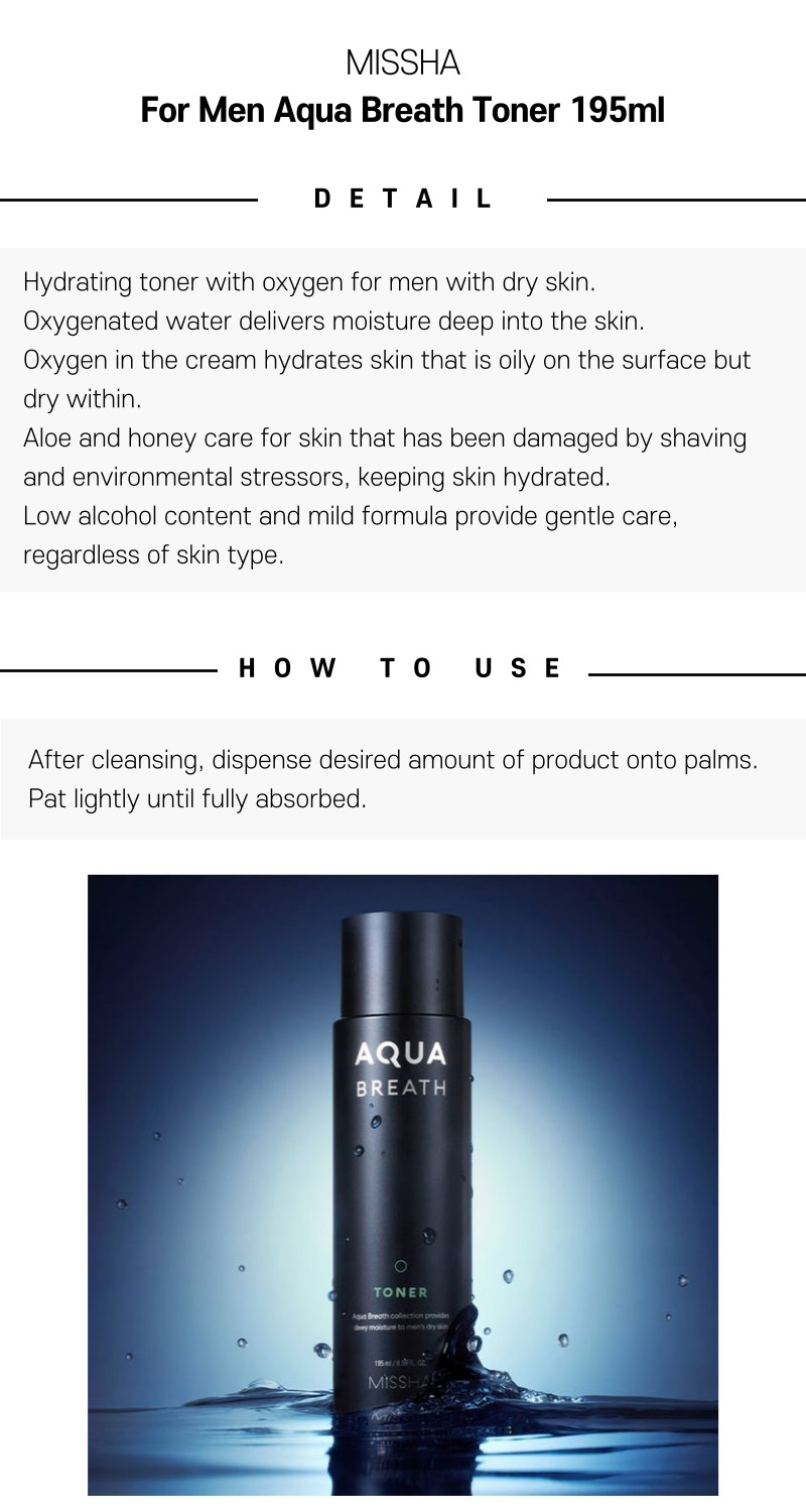 The MISSHA For Men Aqua Breath Toner is a refreshing, hydrating toner designed specifically for men’s skin. With its lightweight, water-based formula, this toner helps to balance skin pH, remove residual impurities, and prepare your skin for the next steps of your skincare routine. Its invigorating formula leaves your skin feeling cool, refreshed, and ready for the day ahead.