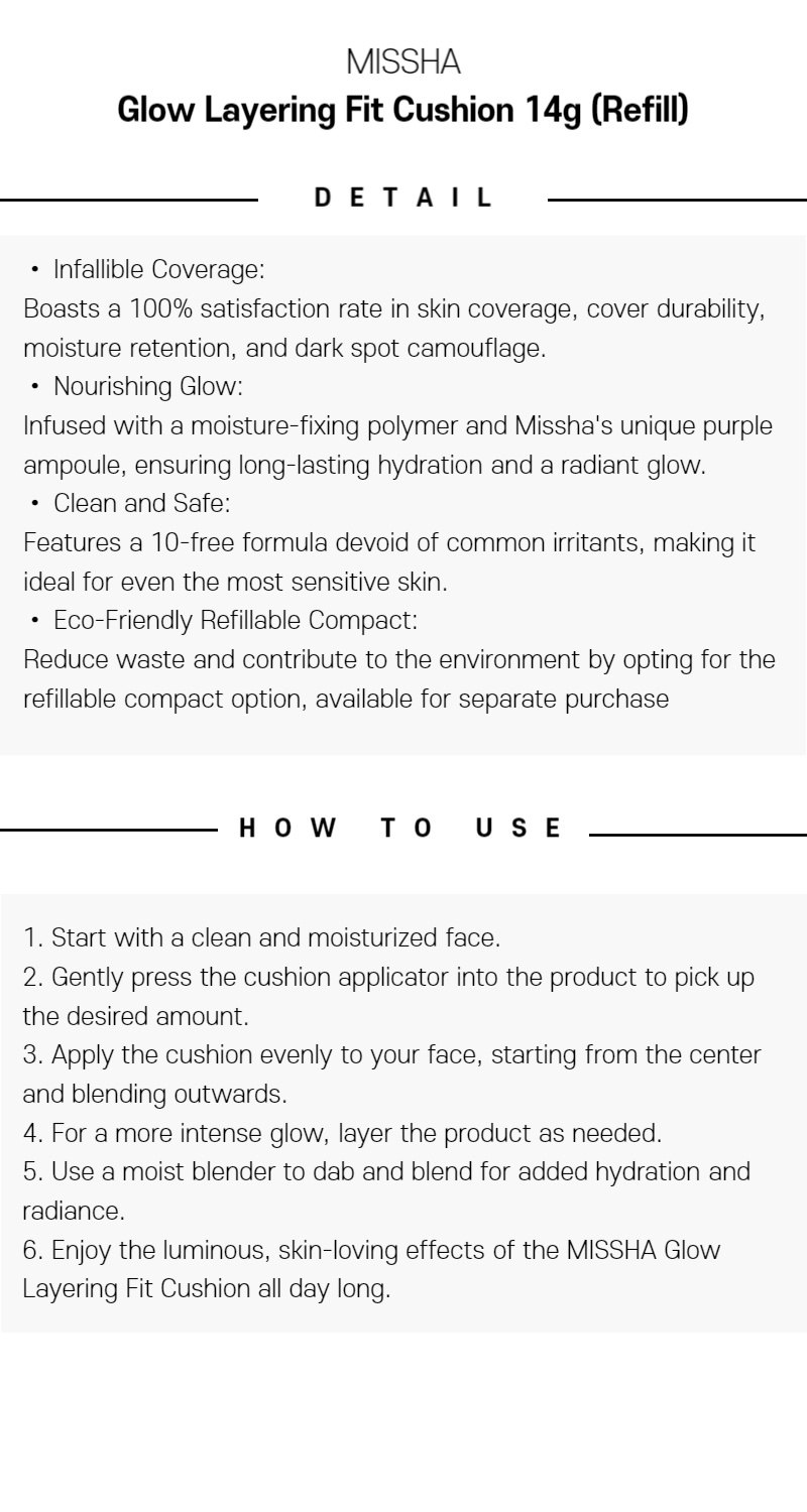 - Anyone who already uses the MISSHA Glow Layering Fit Cushion and needs a refill for continued flawless application.